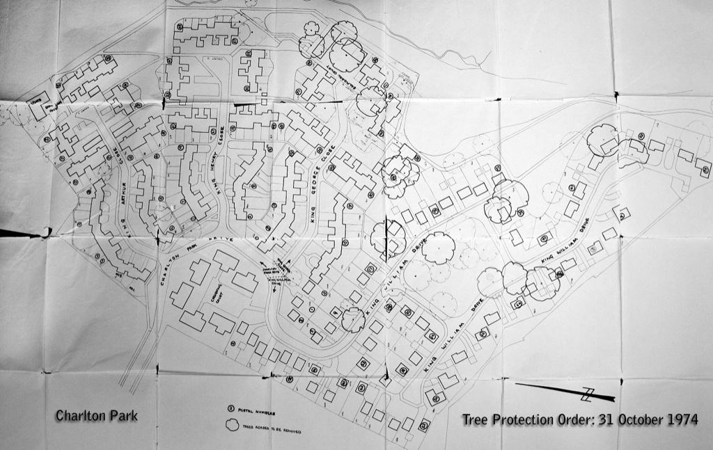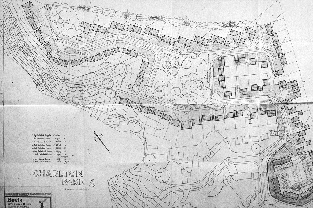 Plans of course can change and the one above certainly did - several times. In 1976 Bovis Homes commenced phase one of their development in Charlton Park working to yet another one, commencing with cul-de-sacs, King Arthur Close and King Henry Close (agreement May 1977) King George Close (agreement Sept 1979) and finally, the fourth of the 'Kings' - King William Drive, completed in 1983 (agreement Sept 1979, adopted November 1984). In total some 261 dwellings were built ranging from one-bed starter homes to four-bed detached houses, several bungalows and just two blocks of flats - each an acceptable three stories high.
