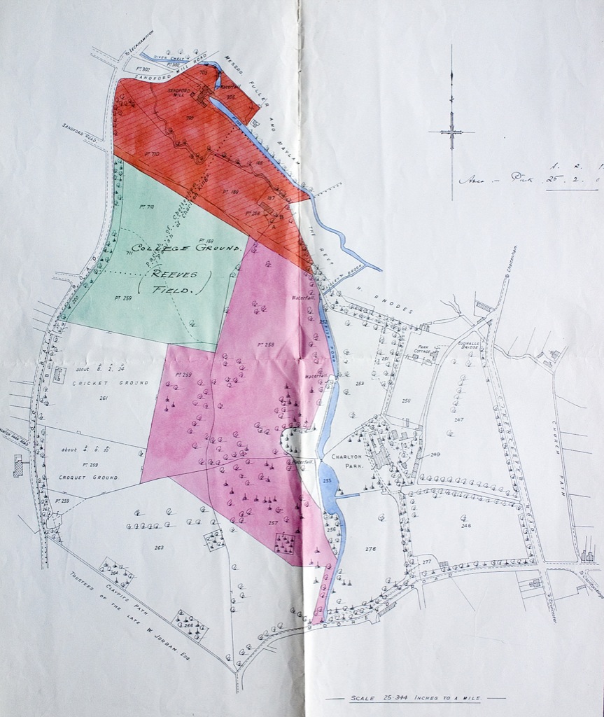 © Cheltenham CollegeThis plan was prepared whilst Hugh W Reeves owned Charlton Park (1922-1935) during which time he sold a portion of land along the S.W., abutting Claypits Path, for the building of high status houses in Charlton Park Gate.