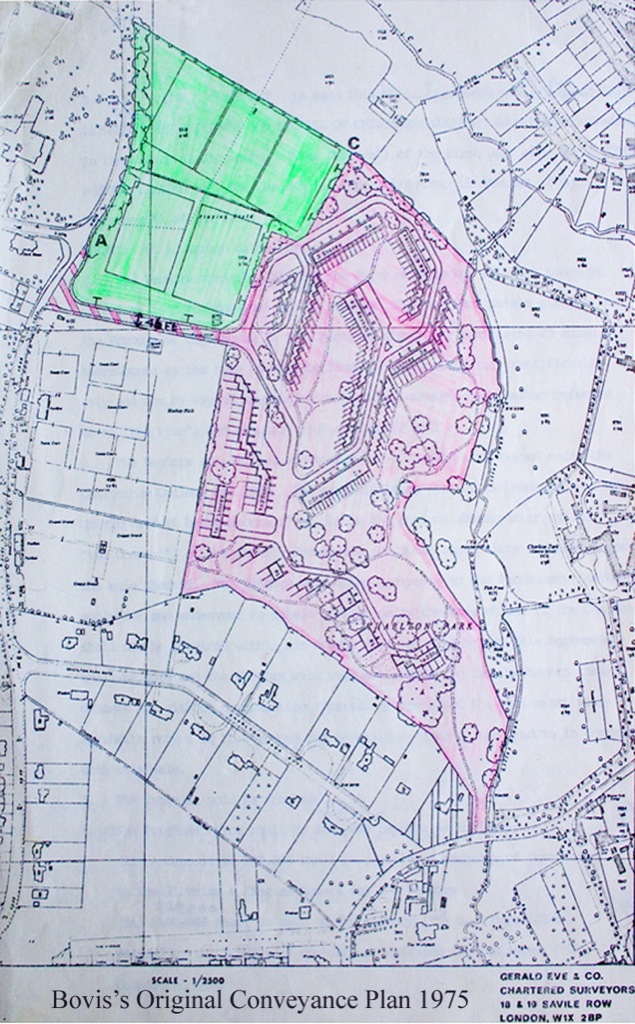 In 1975 one of the numerous offers received from developers far and wide was accepted by Cheltenham College. On 17 October 1975 an agreement was signed between Cheltenham College and Bovis Homes Western Ltd (Cheltenham) in which twenty nine acres of Charlton Park was sold freehold, the college retaining all of Reeves field. The sale price was £715,000 and the financial side of the transaction required the payment of a £30,000 deposit on 'exchange of contract' in October 1975 followed by stage payments of £220,000 in January 1976, £155,000 in January 1977, £155,000 in January 1978 and £155,000 in January 1979, the 'completion date'. The sale finally enabled the College to modernise several of its boarding-houses, bringing them up to the standard then expected by parents.
